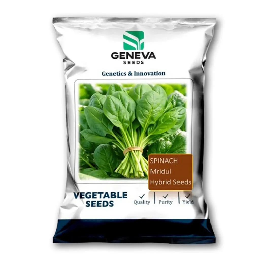 Mridul is an improved spinach variety developed for rapid growth, superior leaf quality, and consistent performance across seasons. It produces lush, dark-green, semi-erect leaves that are thick, tender, and ideal for fresh market sale. With strong early vigor and quick regrowth, Mridul supports multiple cuttings, increasing overall productivity and profitability. The variety shows reliable tolerance to heat, excess moisture, and common leaf diseases, ensuring healthy plants and stable yields. Its attractive colour, freshness, and high market acceptance make Mridul a dependable choice for leafy vegetable growers.