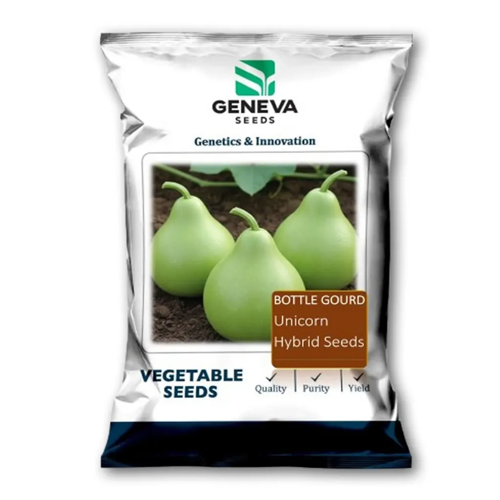 Unicorn is an advanced bottle gourd hybrid designed for superior yield, attractive fruit quality, and strong field performance. The plants exhibit vigorous vine growth, robust branching, and early flowering, supporting continuous fruiting throughout the season. Unicorn produces uniform, cylindrical, light-green fruits with smooth texture, excellent tenderness, and high shelf life—ideal for fresh markets. The variety shows dependable tolerance to common diseases like downy mildew and powdery mildew, ensuring healthier plants and reduced losses. With strong adaptability and high market preference, Unicorn ensures consistently profitable cultivation.